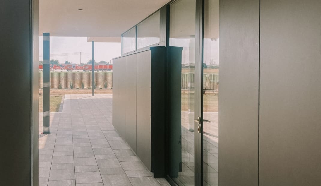 • Wąskoprofilowe drzwi przesuwne w systemie Keller minimal windows z progiem zlicowanym z posadzką;