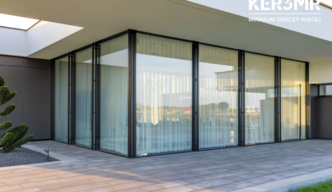 • Wąskoprofilowe drzwi przesuwne w systemie Keller minimal windows z progiem zlicowanym z posadzką;